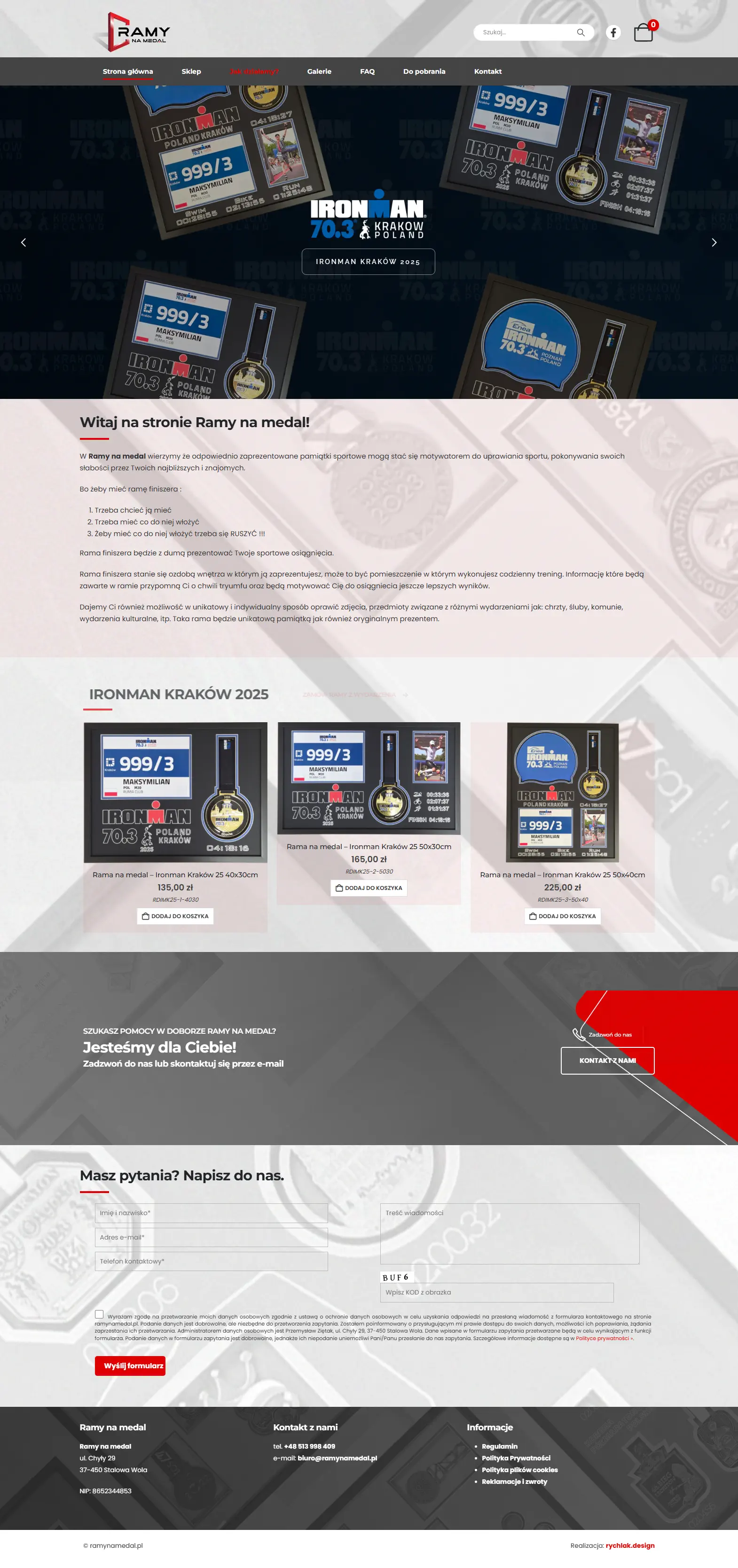 Sklep internetowy wykonany dla firmy zajmującej się oprawą w ramy pamiątek sportowych (dyplomy, medale etc.).